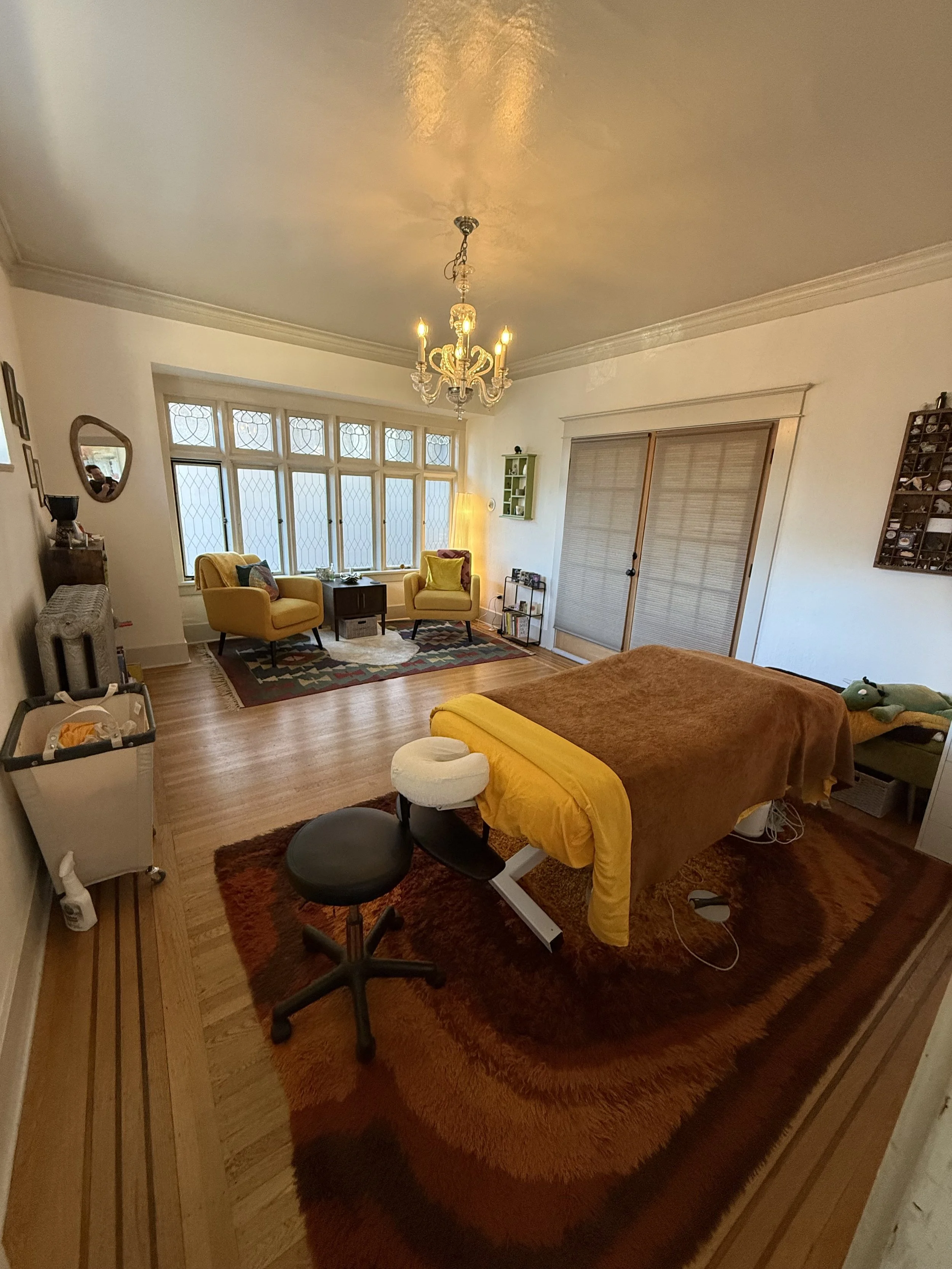 There is ample free street parking in the neighborhood, and a parking lot belonging to a church next door, as well as covered bike parking.